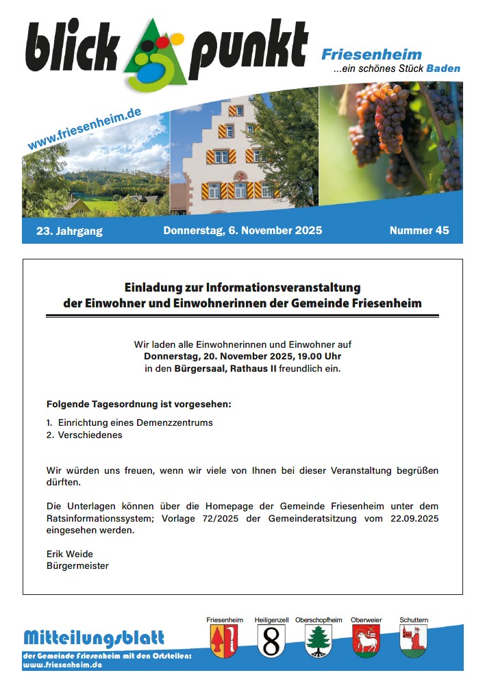Unser Mitteilungsblatt für die Gemeinde Friesenheim und ihre Ortsteile