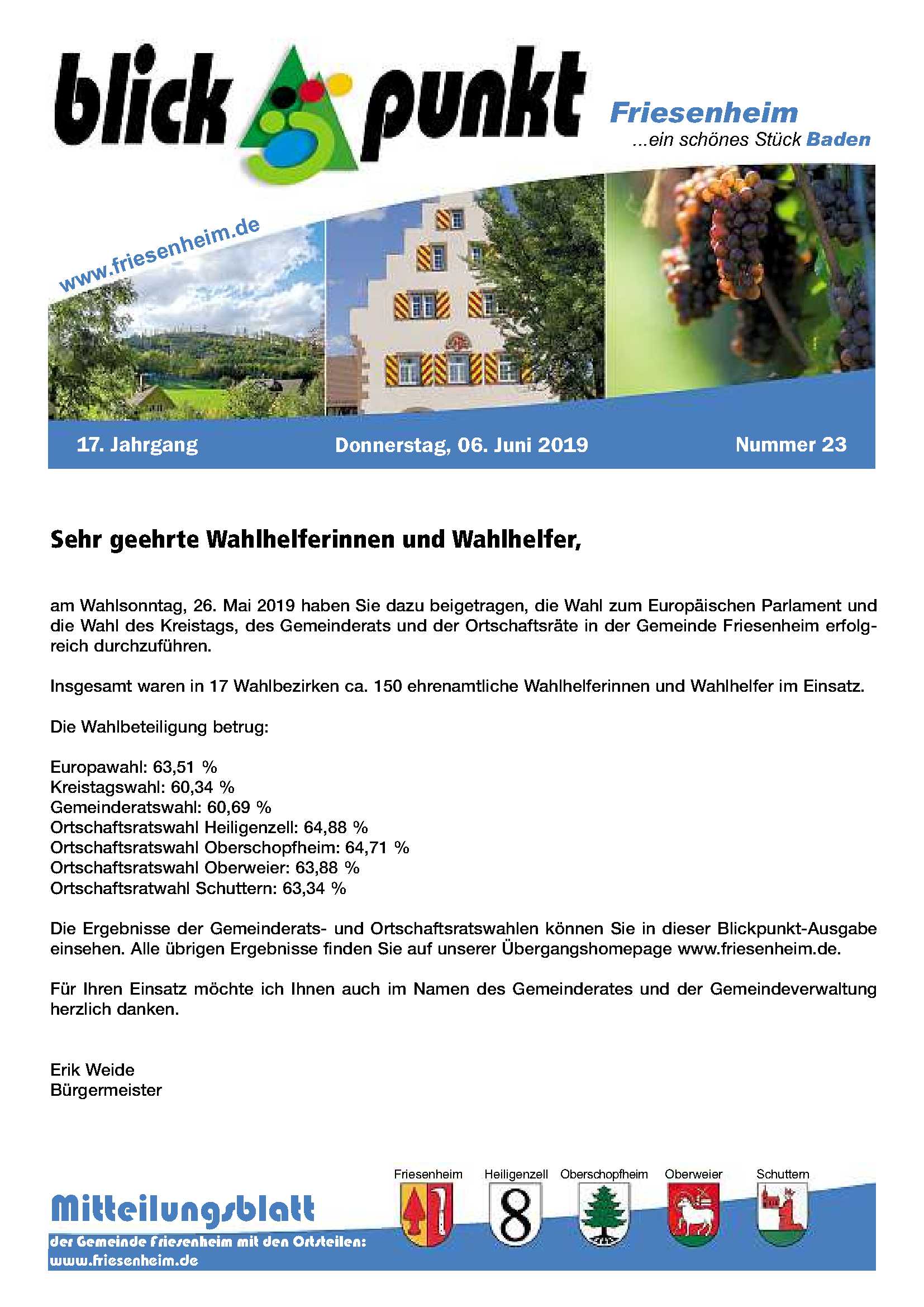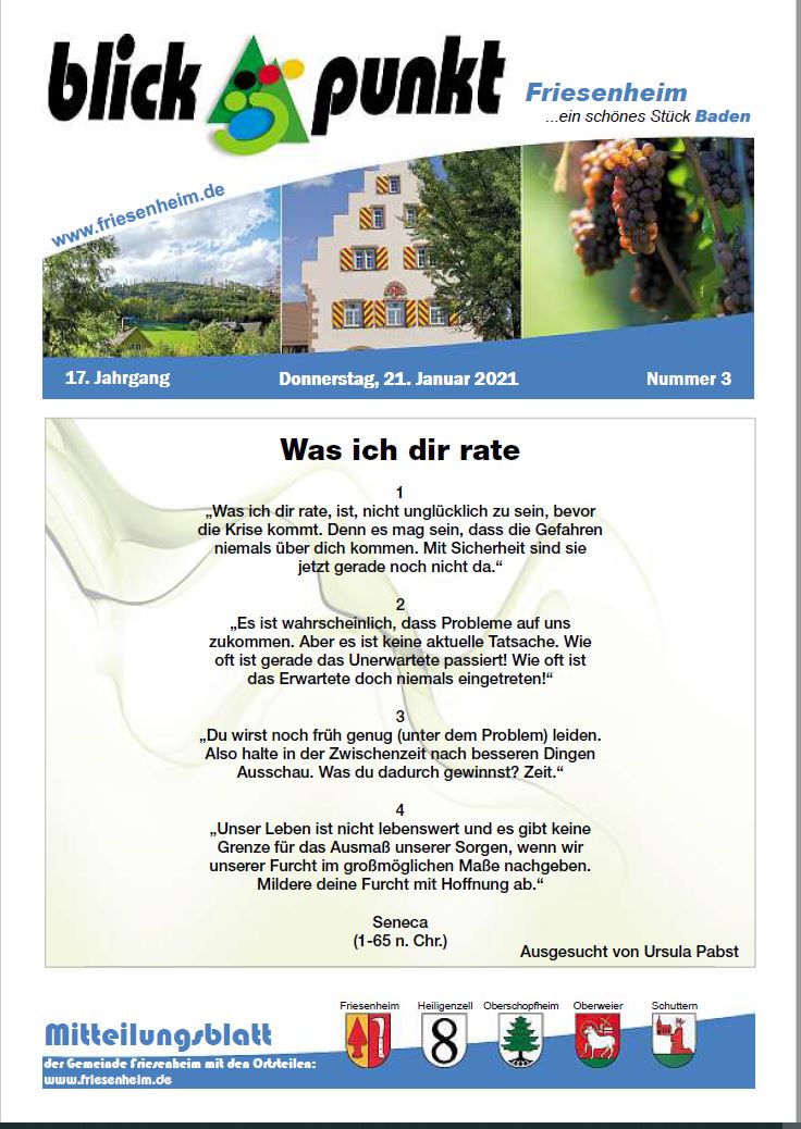 Unser Mitteilungsblatt für die Gemeinde Friesenheim und ihre Ortsteile