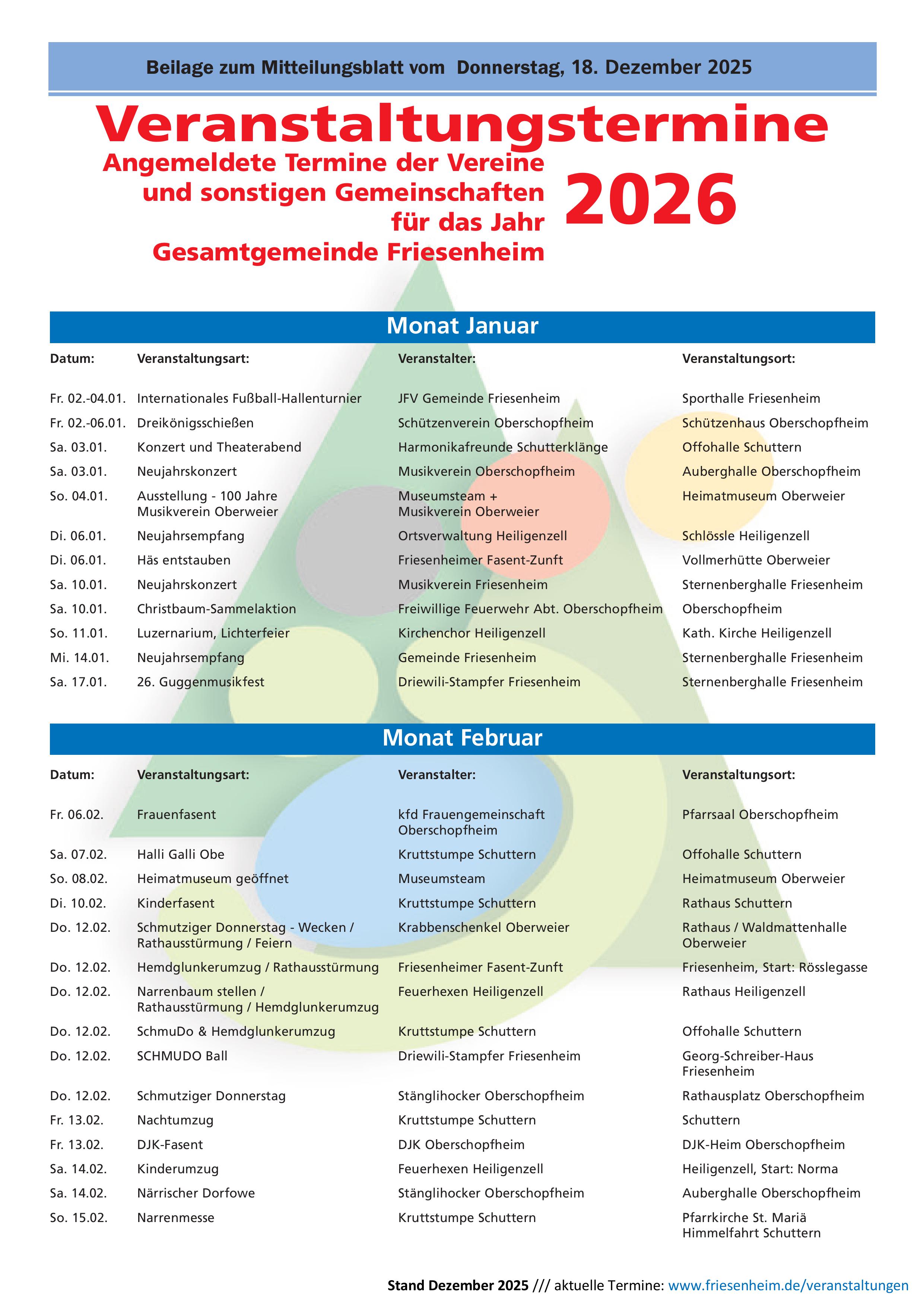 Jahresveranstaltungskalender 2026 Die neuen Veranstaltungstermine zum Download: Jahresveranstaltungskalender Gemeinde Friesenheim - 2026