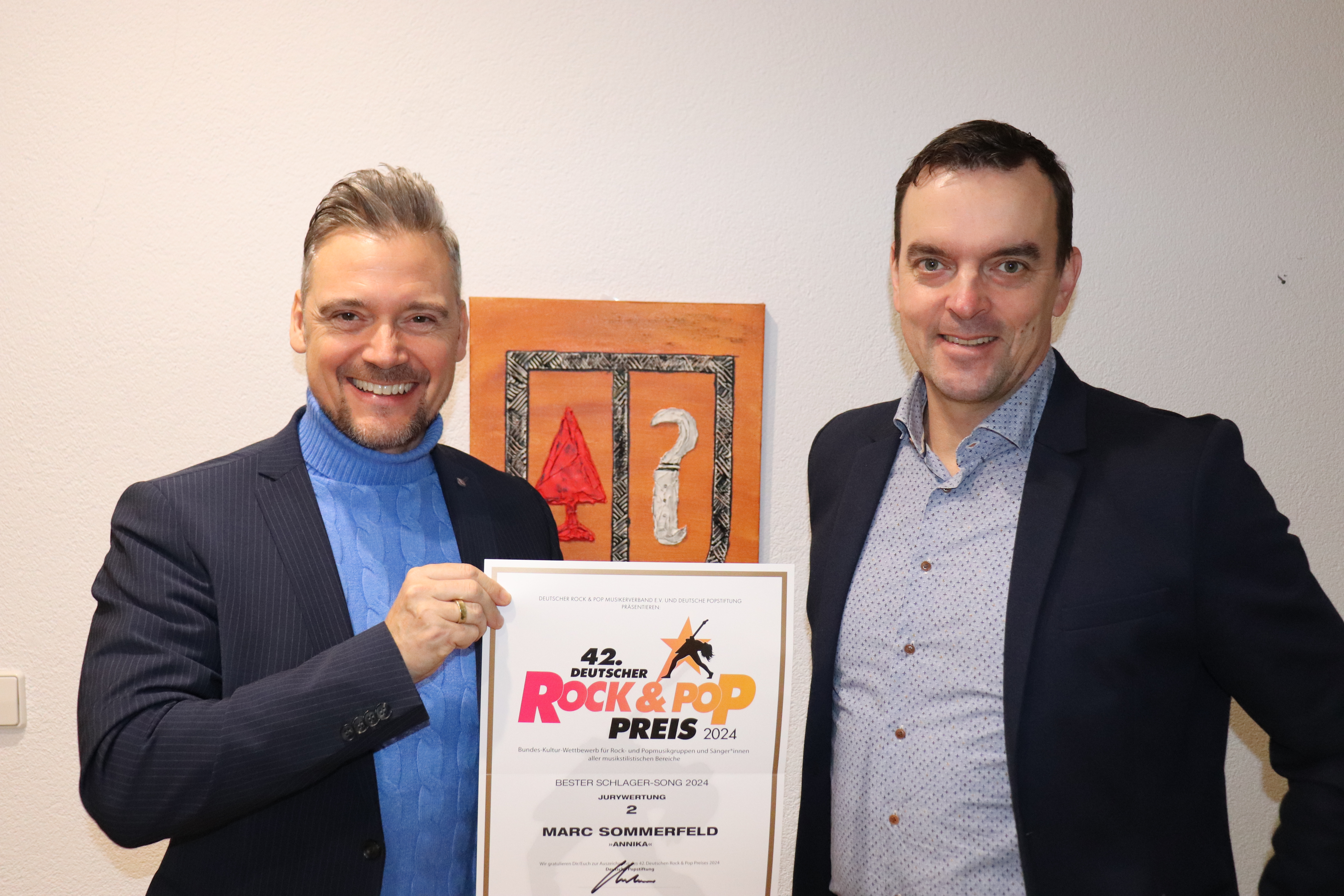 Mit einem großen Erfolg geht das Jahr 2024 für den Friesenheimer Schlagerstar Marc Sommerfeld zu Ende. Er wurde beim 42. Deutschen Rock- und Pop-Preis in der Kategorie „Bester Schlagersong“ als offizieller Preisträger ausgezeichnet. Mit seinem Schlager-Party-Hit "Annika" erreichte der Sänger in der Kategorie "Bester Schlagersong" den 2. Platz und wurde für seinen Erfolg von der Jury ausgezeichnet.